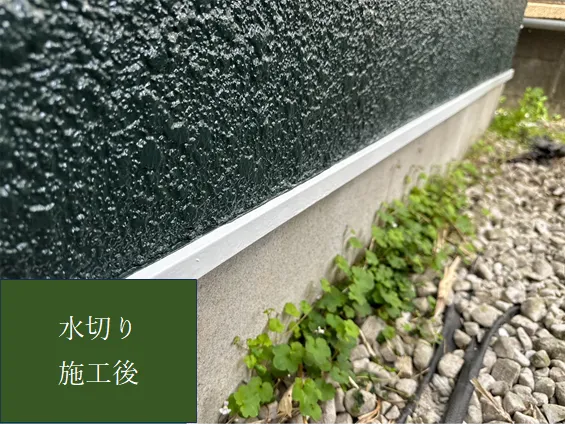 水切り塗装は、住宅の外壁と基礎部分の間に設置される水切りとよばれる金属部材に対して行われる塗装作業です。